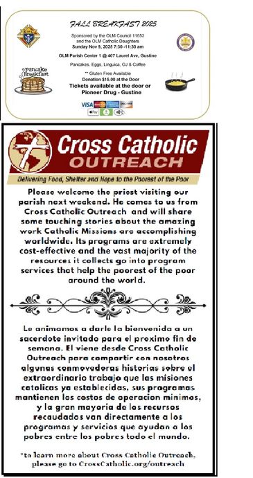 You can download our Sunday Bulletin. We will keep 3 months. If you need one further back please contact the office.